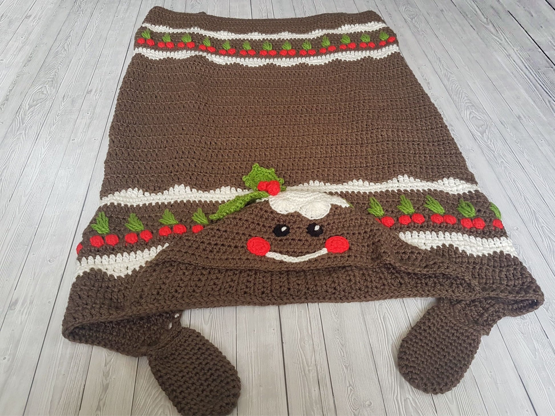 2in1 Hooded Christmas Blanket Christmas Crochet Pattern Pudding Holly Border Adult & Child Wearable Blanket Christmas Birthday Gift Afghan