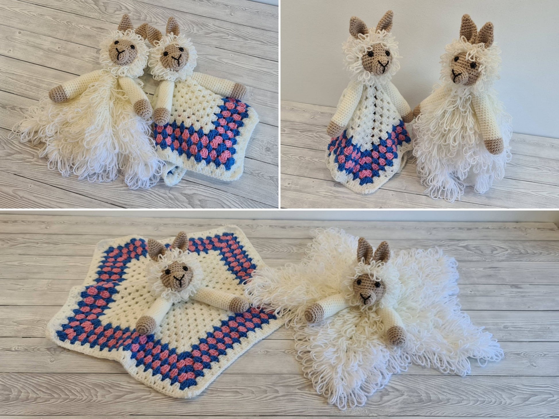 They are the matching loveys to my 3in1 Llama Baby Blanket which you can buy separately in my shop.