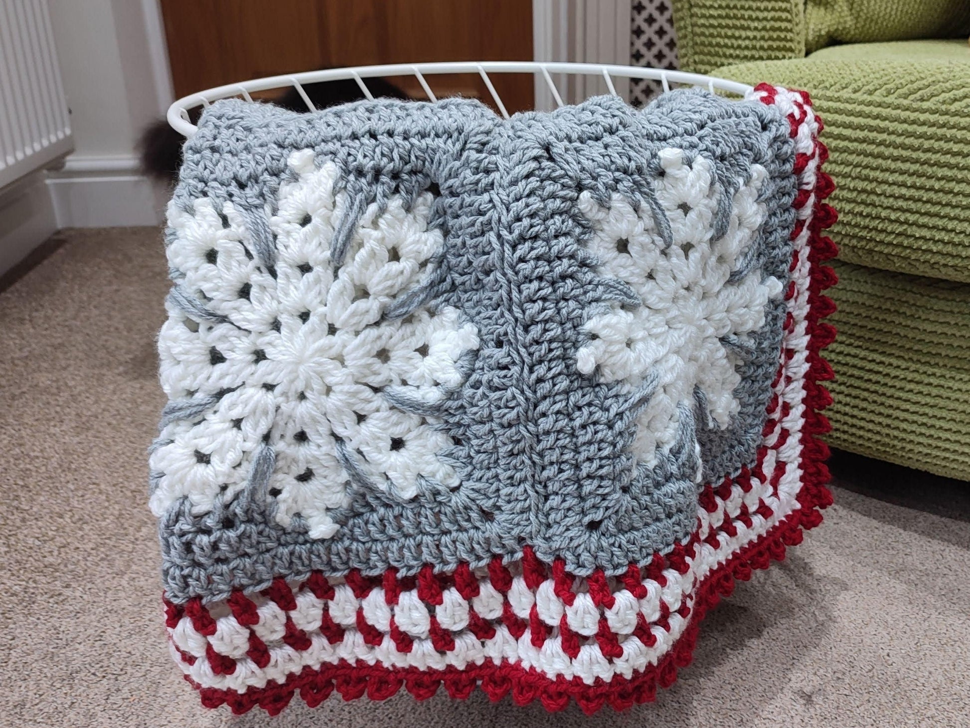 Winter Snowflake Afghan Blanket Lapghan Crochet Pattern | Snowflake Blanket Baby Shower Gift Granny Square Blanket Baby Gift Birthday Gift